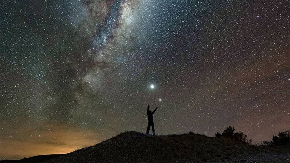 Hace unos meses, allá por junio, Gerardo planificó la foto de la semana. Estudioso, aunque aficionado, salió a buscarla. “Me fui con todo mi equipo hasta Bahía Creek, un balneario de Río Negro”, recuerda. Esa noche se daría un fenómeno astronómico único, la conjunción de Júpiter y Saturno, que vistos desde la Tierra parecían visiblemente cercanos. “Así que me paré en la loma de un médano, esperé, y cuando se dio el momento, tomé el control remoto para hacer la foto”, relata. Para lograr la toma perfecta estuvo varias horas, porque ese es uno de los secretos de esta técnica.