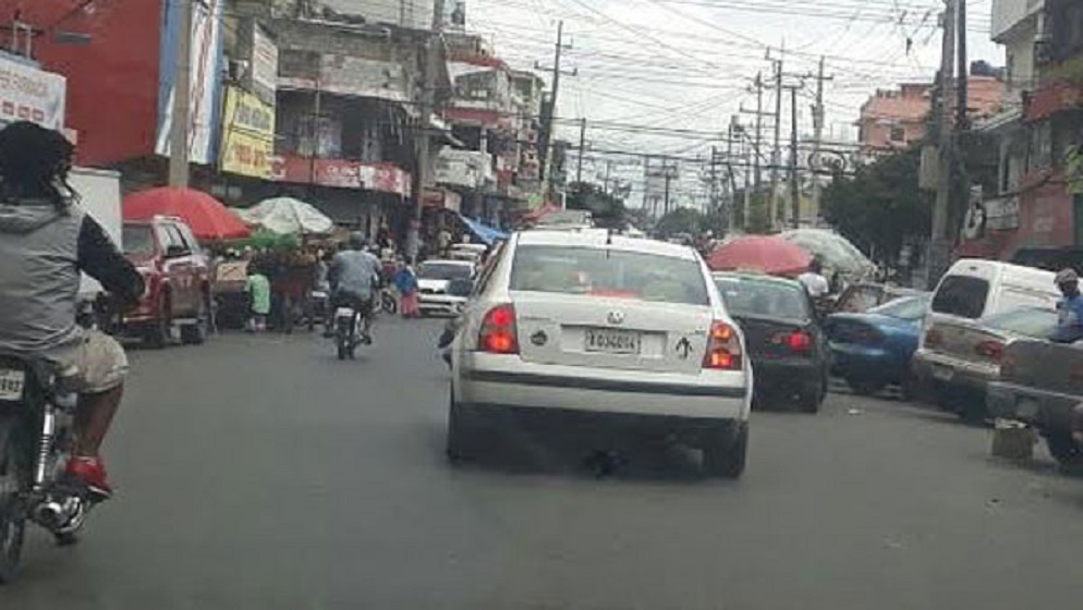 Una de las vías donde abundan los parqueos improvisados de vehículos, es en la calle Juan Erazo, en Villas Agrícolas, y sumado a ello se hallan las decenas de negocios que impiden el libre tránsito de los peatones.